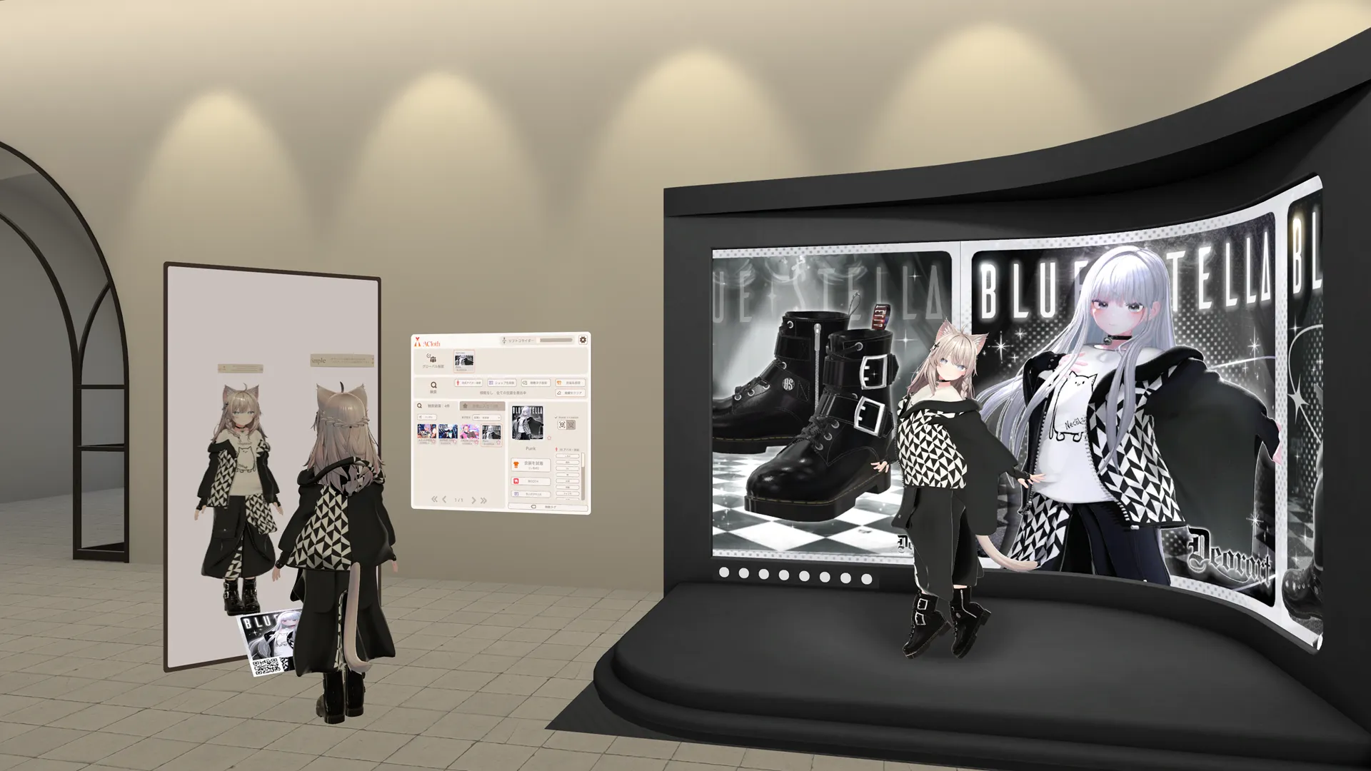 ACloth(アクロス) は、VRChatのFUJIYAMAなどで衣装の展示・試着ギミックを通じてユーザーへのPRを行う、有料の衣装展示サービスです。
